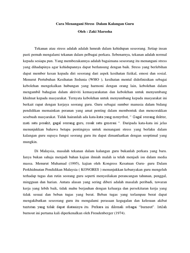 Cara Menangani Stress Dalam Kalangan Guru Pdf